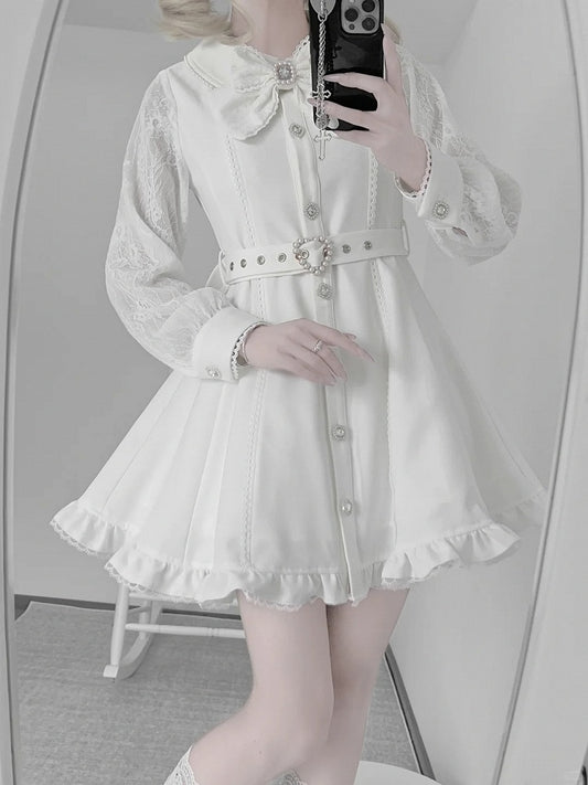 Dress White Cape and Belt Collar Detachable Jirai Buckle with Beaded Kei