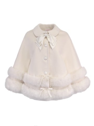 Faux Fleece Cloak White With Fur-Trimmed Bow Accents Creamy