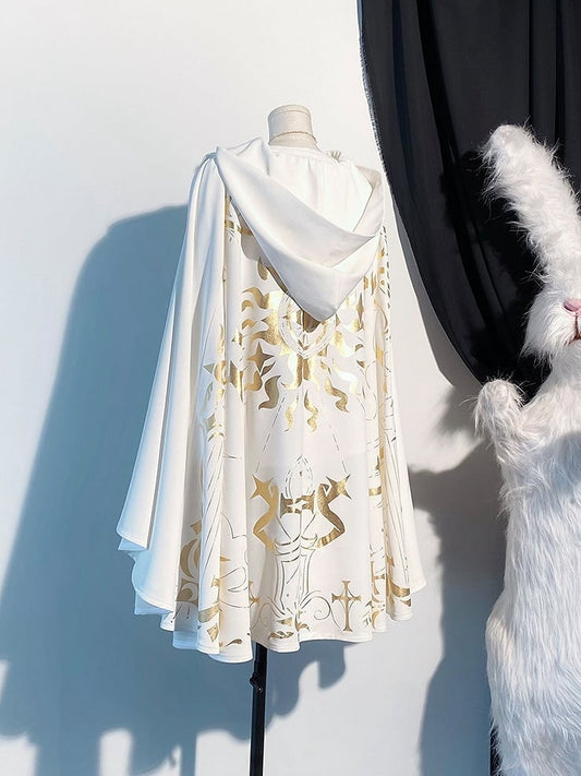 Cape Golden White Print Hooded