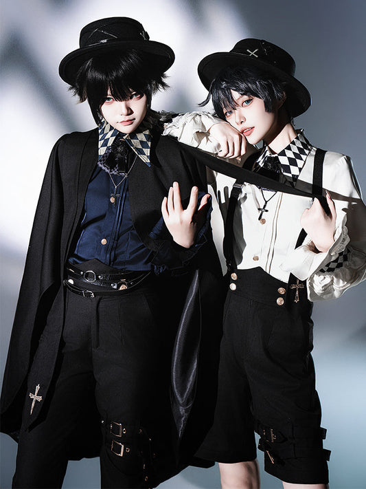 Little Detective Vibes Ouji Lolita Full Set - Long Sleeves Shirt + Cape + Brown Waistcoat + Black Shorts