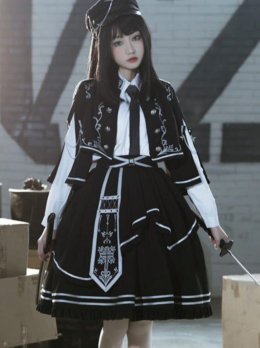 Set Army Up Low Skirt Brumble Cape Dark Military Battle Jacket Uniform