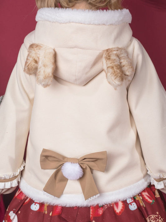 Hood Plush Cape Design Jirai Kei Beige Bunny Ears Bowknots Detachable