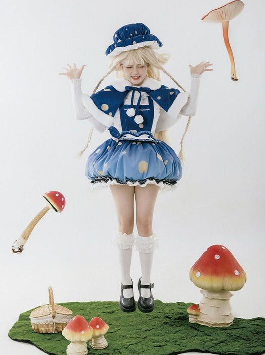 skirt hat + small hat heart accessory + ruffle big + cape Mushroom + suspender fur brooch hat
