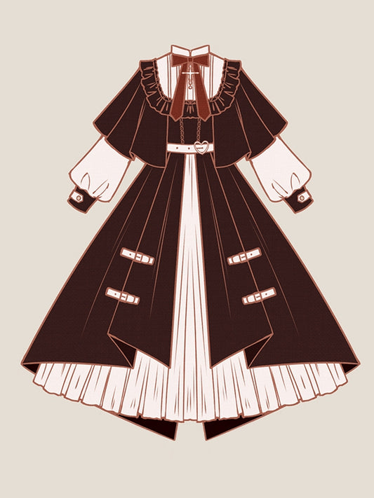 Design Lolita Black Collar and Beige Cape Dress Banded Long Sleeves
