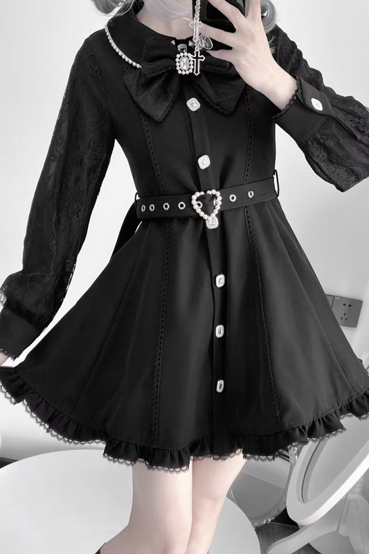 Black Elegant Cape Design Long Sleeves Dress Gothic Lolita Dress