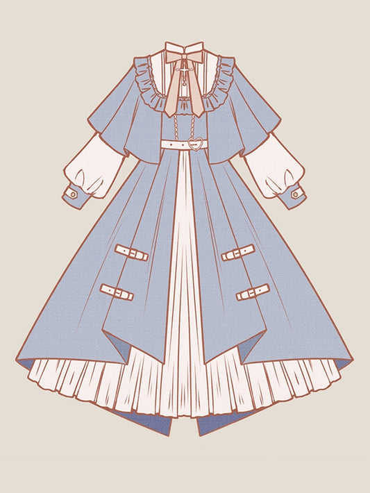 Long Dress Sleeves Collar and Beige Banded Lolita Cape Blue Design