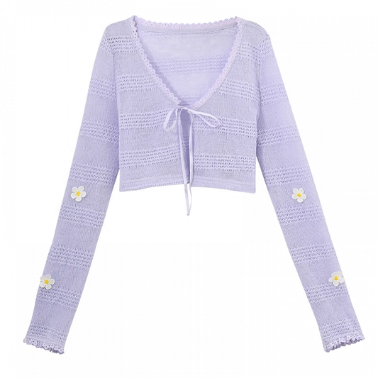 Lavender V-Neck Accents Summer Knit Cardigan Floral