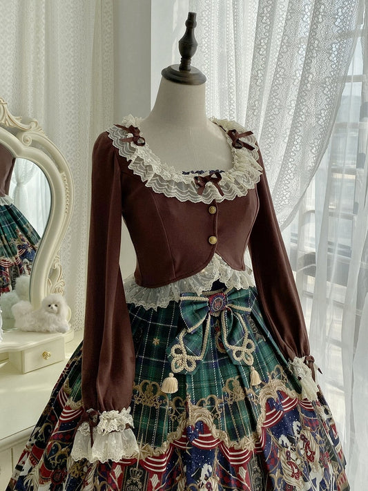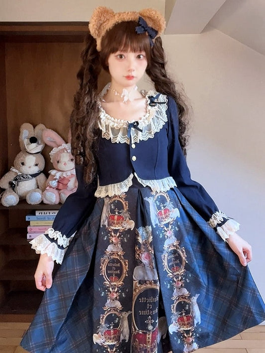 Autumn Trim Fashion Blue Accents Dusty Cropped Lolita Cardigan with Lace Bow and