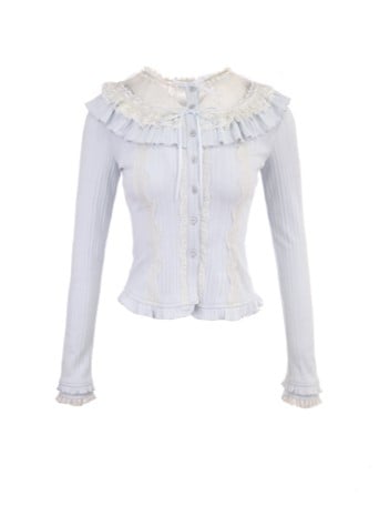 Knit Cardigan Bow Ruffled Lace Blue Vintage