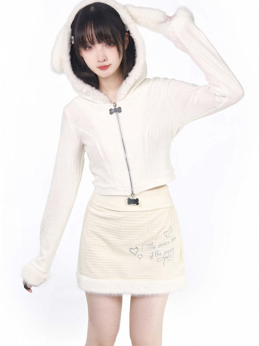 Cardigan Puppy Ears Hooded White Plush