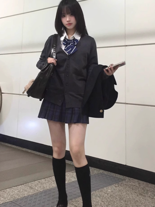 Autumn JK Uniform Preppy Black/Gray Style V-neck for Knit Cardigan
