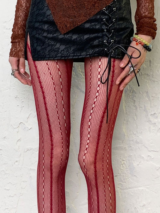 Wine Red Y2K Hollow-out Sheer Tights