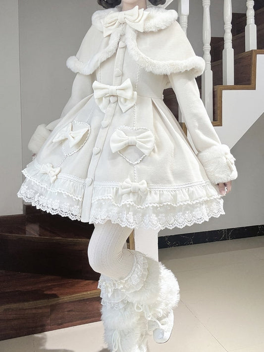White Bow Accents Cape Lolita Coat with Lace Trim