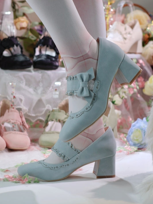 Design Jane - Green Square Lolita Toe for Pink Bow with Classic Mary Heels