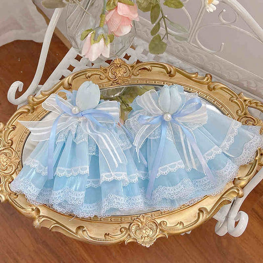 Crocs-style Bow Accents Pink Sweet Lolita with Blue Clogs Star Decor Platform