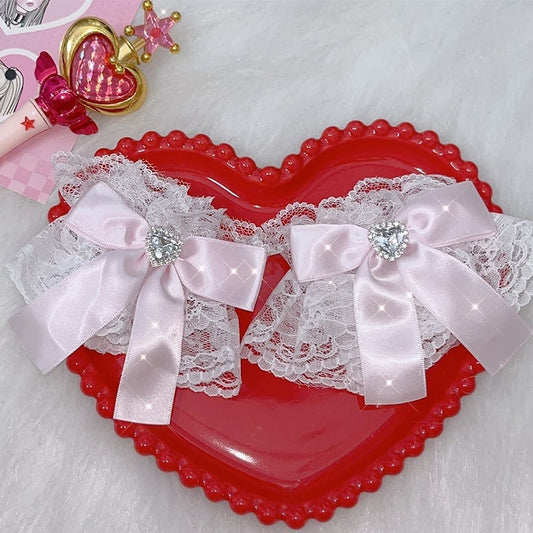 Cuffs Kei Lace Bowknot Wrist Trim Jirai Pink/White/Black