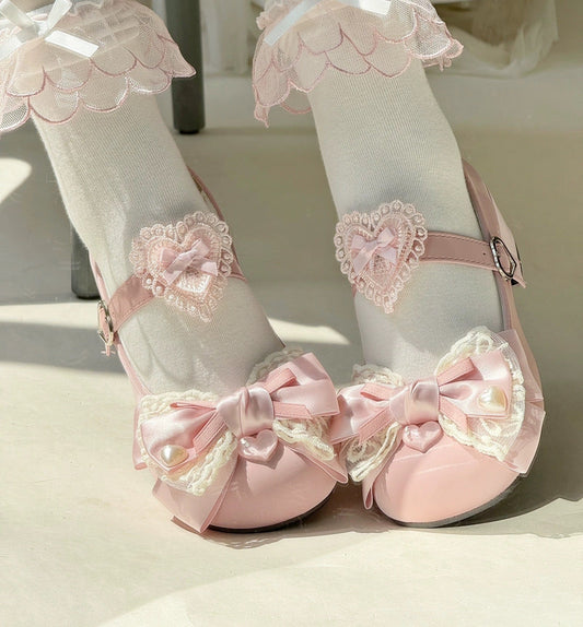 Creamy Padded Fork Wand with Black Bows and Heart-shaped Decoration