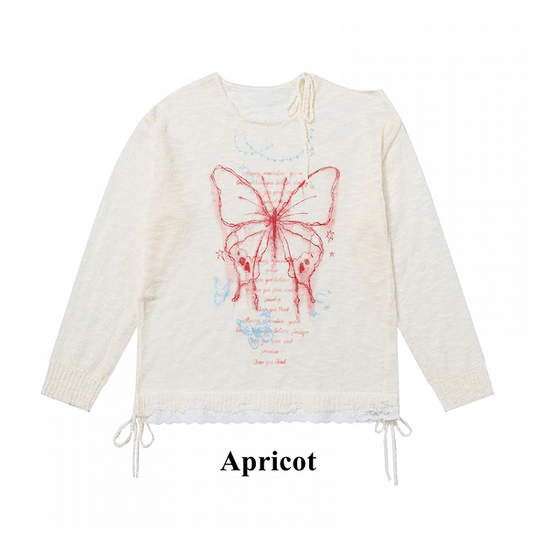 Coverup Semi-sheer Butterfly Print Cutout Shoulder White/Black/Apricot
