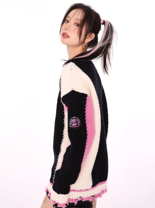 Contrast Color Logo Damaged Knit