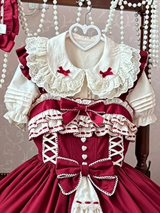 Bowknots Wine Red Peter Pan Collar Sweet Beige Ruffled
