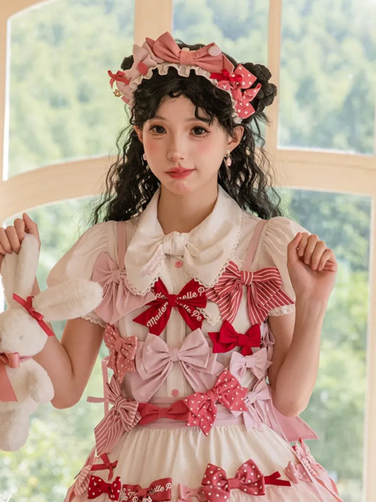 Bowknot Sweet Striped Lolita Pattern Hairclips Red/Pink