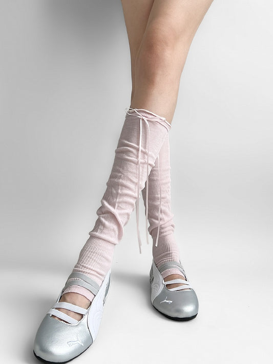Bowknot Stockings Crisscorss Over-knee White Banded Y2K Details