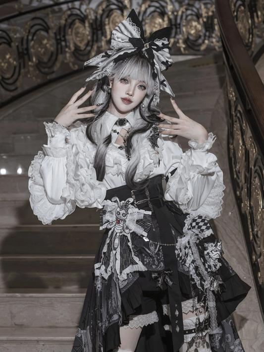 Bow Skirt Lolita Sweet and Black Tiered White Oreo Cake Accents Dress