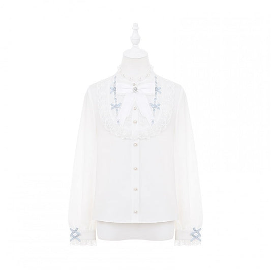 Blue with Dusty Blouse Tie | Included Jirai Ruffle Kei Bow Free and Neckline White