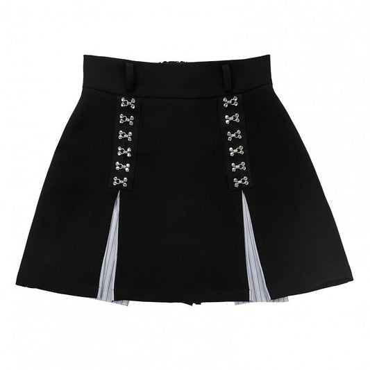 Blue Pleat Skirt High and Waist Black Box