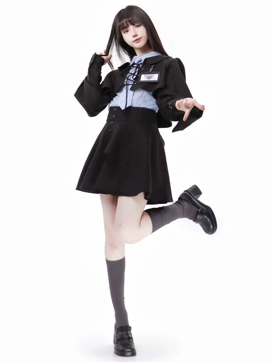 Blue Skirt Ribbed Cardigan Ice Top Flared