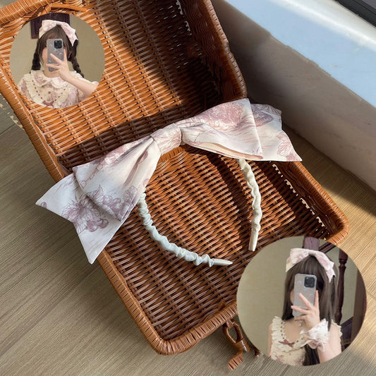 Blue Hairband Bowknots Pink Criss-Cross Lace Ribbon with and