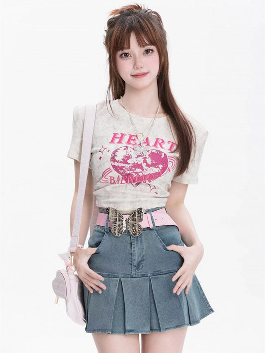 Blue Box High Pleat Skirt Waist Denim Hem