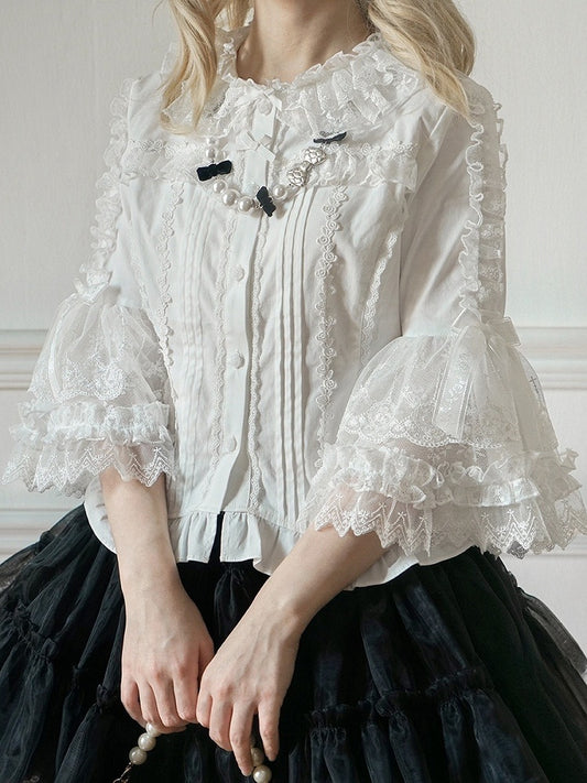 Blouse White Neckline 3/4 Ruffle Lolita Sleeves
