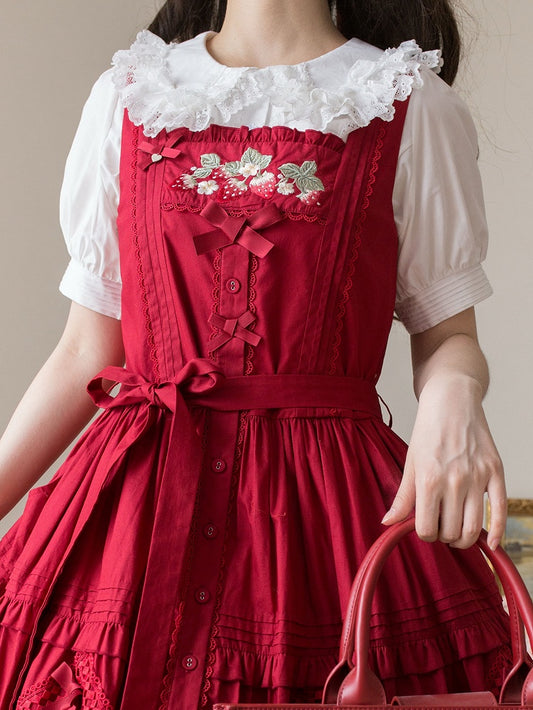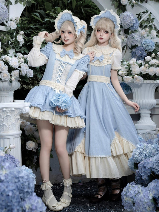Blue Bodice Heart Detachable Padded School Dress Old Lolita Jumper Skirt