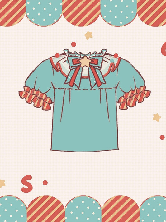 Blue and Pink Bowknots Top Skirt Cosplay Costume