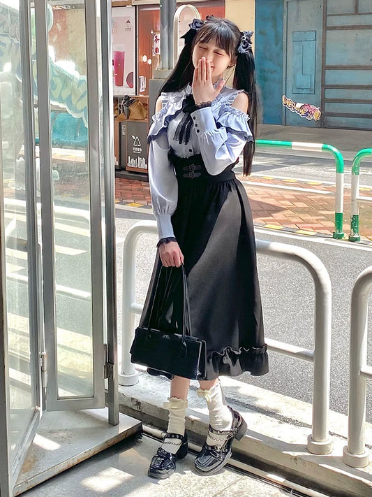 Blouse Girl Suspender Retro Skirt Retro