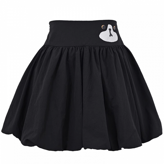 Black Elastic Waist Kitty Bubble Skirt Print