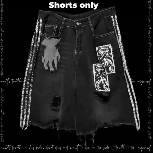 Black Stripes Raw Hem Appliques Distressed Holes White