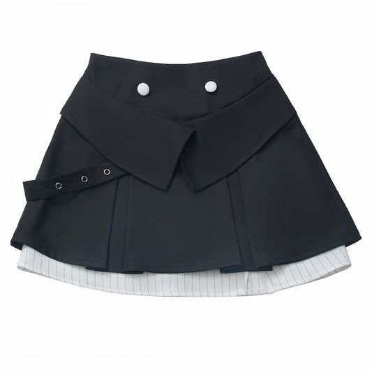 Black Box Pleat Skirt White Stripes Patchwork Design