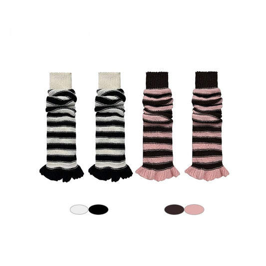 Black Warmers with Pink / Leg Knitted White Flared Pattern Striped Brown Ruffles