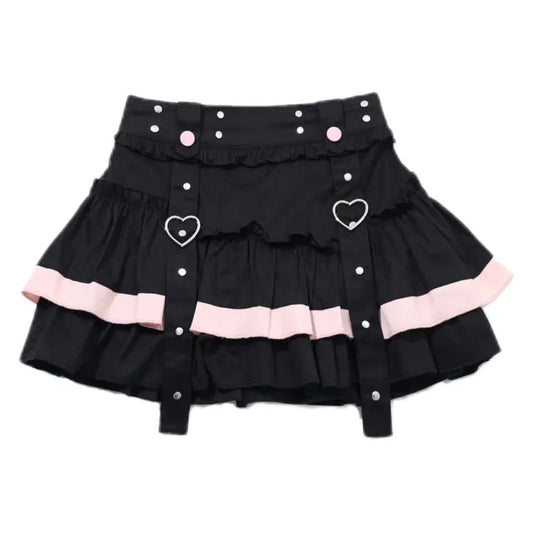 Black Tiered Skirt Mini Ruffles Pink and