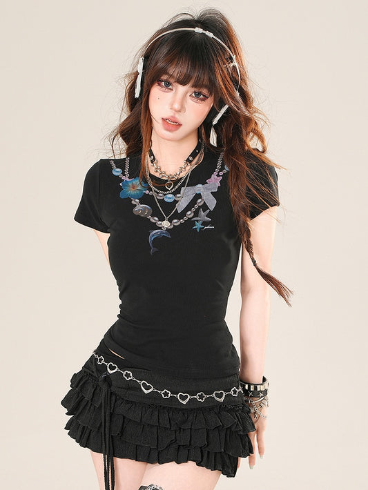 Black Print Bittersweet Beaded Glamorous T-shirt Necklace