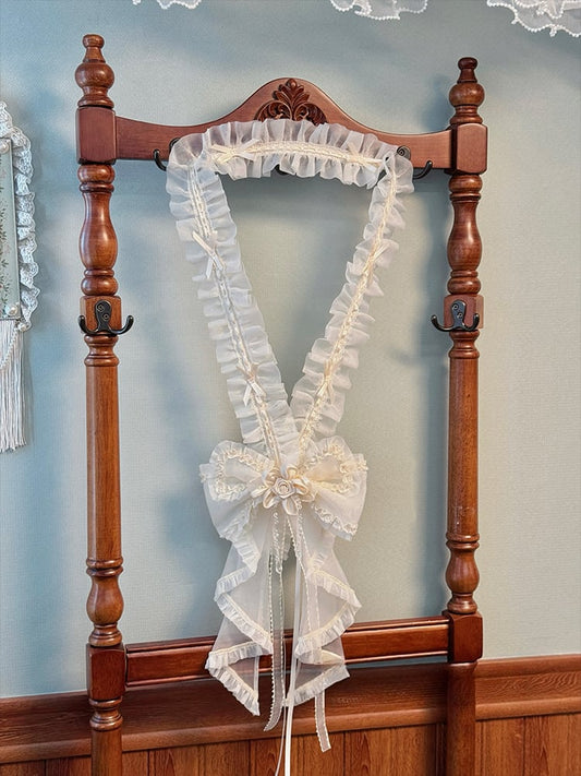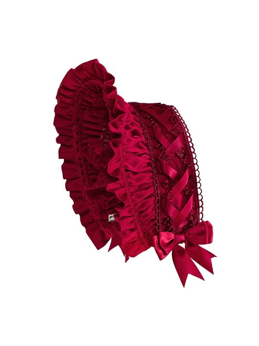 Black Satin Lace Trim Bonnet With Bowknot Details Hairclips