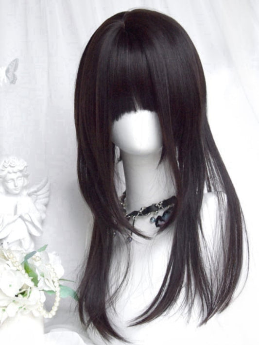 Black Long Straight Wig With Full Bangs