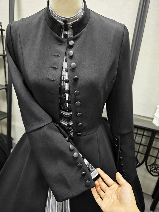 Black Mandarin Collar Long Sleeves Coat