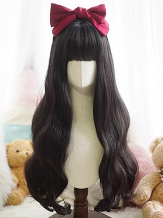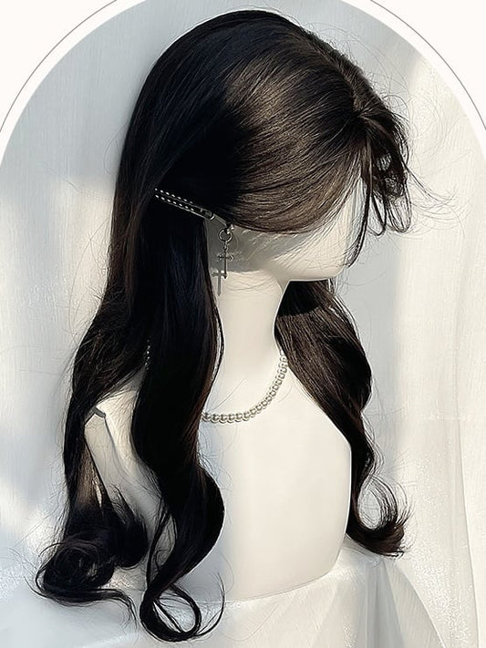 Black Long Wavy Wig With Full Bangs
