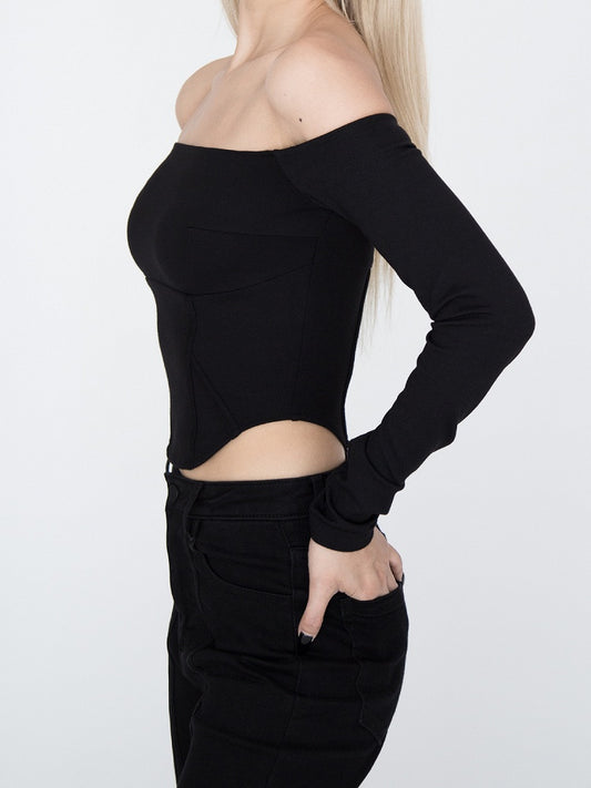 Black Off-the-shoulder Neckline Curved Hem Top