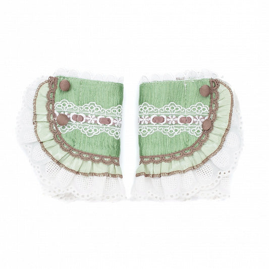 Wrist Lace Charm Country Beige With Green Bowknot Lolita Cuffs Bead