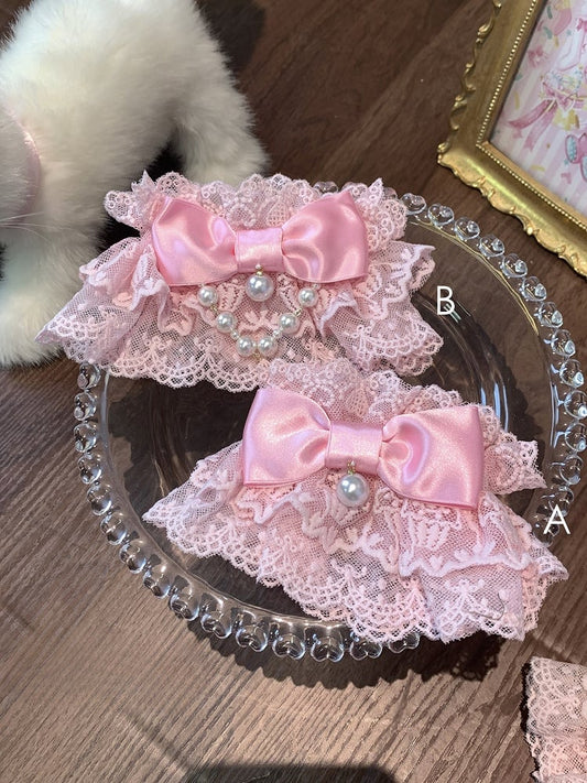 Wrist Bow Accents with Cuffs Lace Gothic Red/Pink