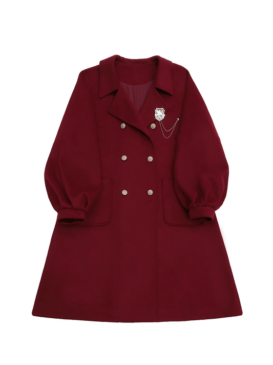 Red Winter Autumn Preppy Vintage Hooded Coat and Brick Version Regular/Thicken for